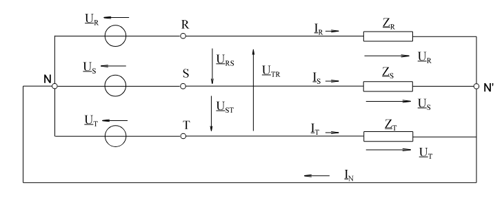 | \( \underline{I}_N = \underline{I}_R + \underline{I}_S + \underline{I}_T \neq 0 \) |